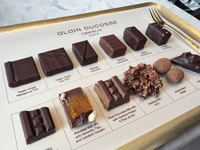 초콜릿은 한국에서 제조한다. 운송 과정에서 맛이 변질될 수 있어서다. 제조 설비와 조리 기구 역시 파리와 동일한 것을 사용한다.미식 요리의 대가가 만든 초콜릿 맛은 어떨까.