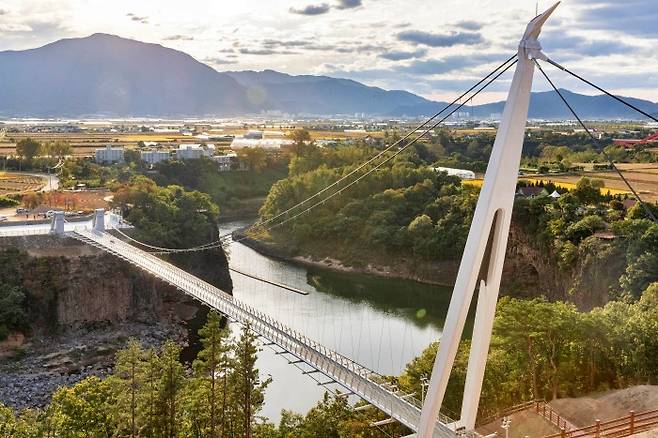 강원 철원군 동송읍과 갈말읍을 잇는 한탄강 은하수교는 유네스코 세계지질공원으로 등재된 한탄강 송대소 일대에 위치한 현수교다. 연장 180m, 폭 3m, 높이 50m의 규모로, 한탄강주상절리길 1코스(장흥리)와 2코스(상사리)를 연결하며 탐방객들이 자연스럽게 이동할 수 있도록 설계됐다. ‘은하수’라는 이름은 별빛이 흐르는 길처럼 아름다운 풍경을 뜻하며, 철원의 지명을 더해 지역의 상징성을 높였다.
