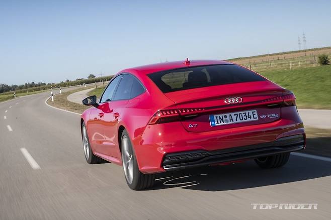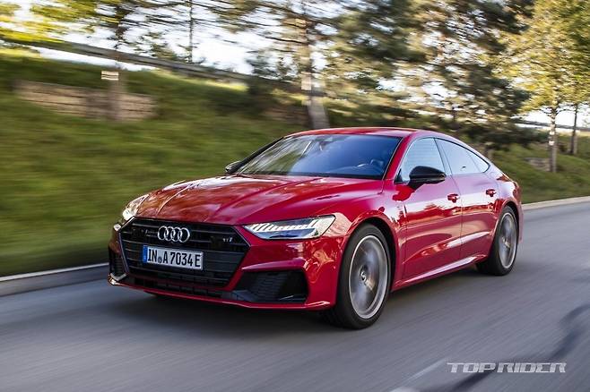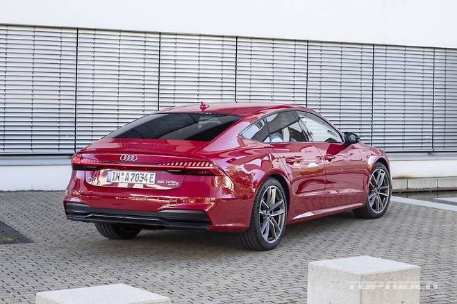 A7 55 TFSI e 콰트로의 파워트레인은 2.0리터 4기통 가솔린 터보 엔진과 전기모터, 7단 S 트로닉 자동변속기, 14.7kWh 용량 배터리로 구성됐다. 합산 총 출력 367마력, 최대토크 50.1kgm의 성능을 발휘한다. 정지상태에서 100km/h까지 5.7초가 걸린다. 최고속도는 250km/h다.