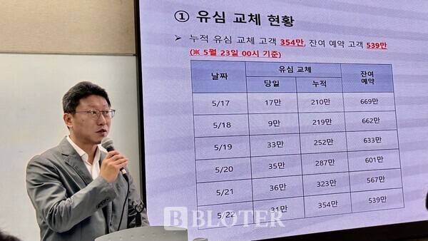 SKT는 유심 해킹 사고 발생 이후 이달 22일까지 누적 354만명의 유심을 무료로 교체했다. 유심 교체를 신청한 남은 이용자는 539만명이다. 임봉호 MNO사업부장은 "유심 교체를 안내 받은 이용자의 50% 정도가 (T월드 매장을) 방문한다"고 설명했다. 이어 "6월에는 교체를 안내했지만 찾아오지 않은 이용자에게 재안내할 것"이라며 "이후에는 예약 여부와 관련 없이 전 매장에서 유심을 교체할 수 있도록 하겠다"고 말했다.