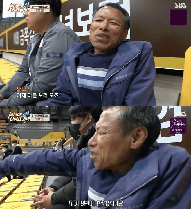 프로배구 선수 한성정의 키는 195cm. 그의 아버지 한은범 씨의 키는 134cm다.