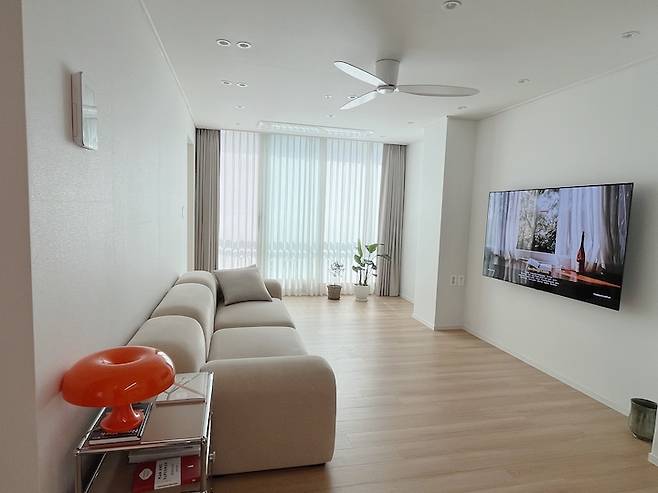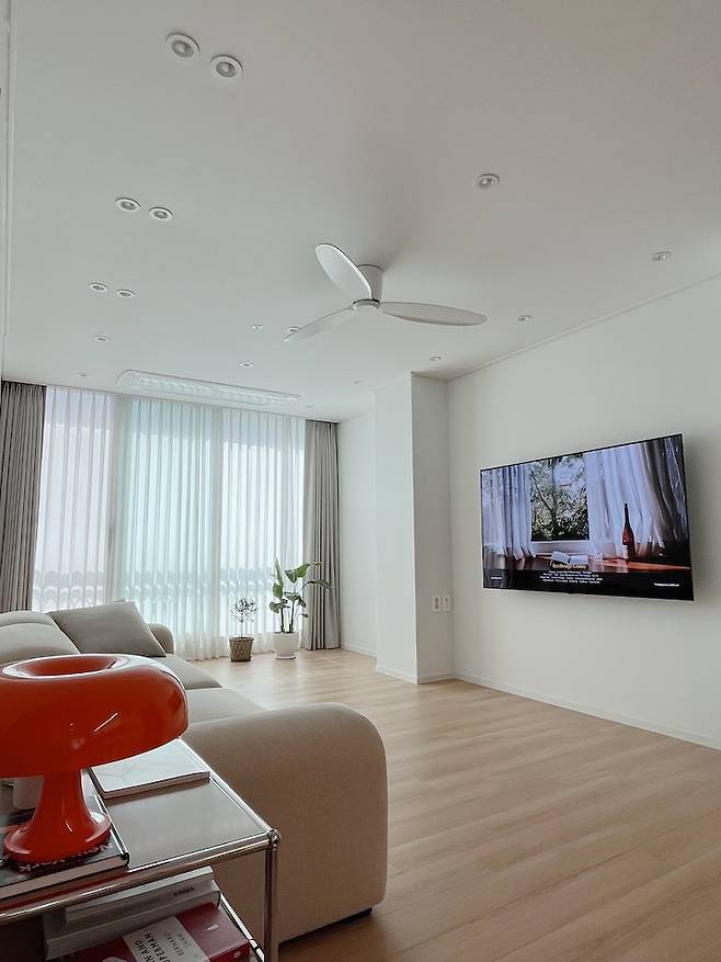그런데 평탄한 천장에도 실링팬 괜찮지 않나요? 저희는 굉장히 만족하고 있답니다ㅎㅎ 특히 실링팬 설치한 건 신의 한 수라고 할 정도로 너무 만족하는 제품이에요!