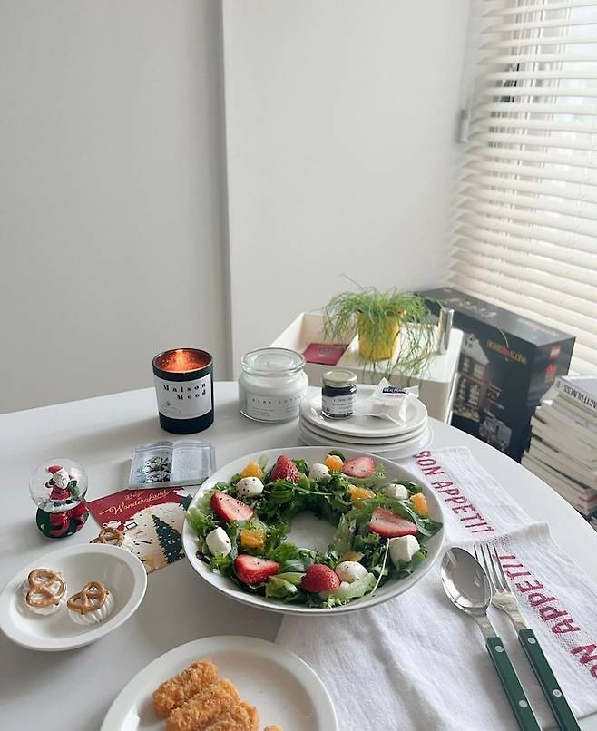 테이블이 6인용이라 모니터랑 컴퓨터만 치워주면 언제든 멋진 식사가 가능하답니다! (그 치우는 게 좀 귀찮지만요...) 솜씨는 부족하지만 예쁘게 차려먹는 걸 좋아해서 종종 요렇게 플레이팅해서 먹곤 해요 :)