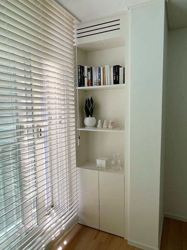 여긴 입주할 때부터 있던 책장인데 시트지 리폼만 해서 사용하기로 했어요 :)