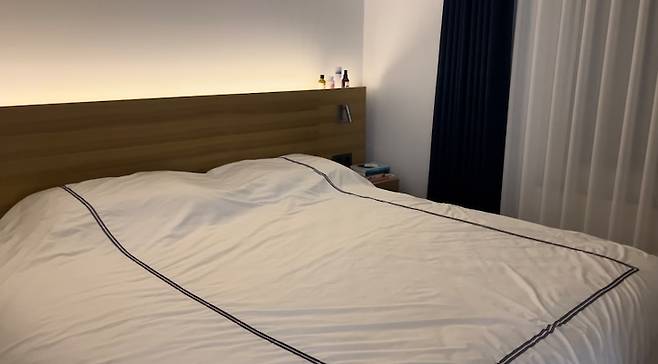 프레임에 달린 라인 조명이 적당히 밝아서 정말 안방 등은 거의 켜지 않고 지내고 있어요 ㅎㅎ 메인 조명이 침대프레임 조명이 되어버린...!