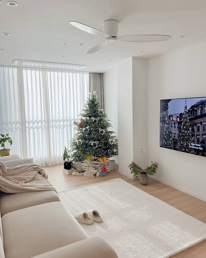 지금은 홀리데이 시즌을 맞이해서 트리로 포인트를 줬는데, 계절이 계절이니만큼 러그도 깔아줬는데 포근포근해 보여서 좋더라구요.