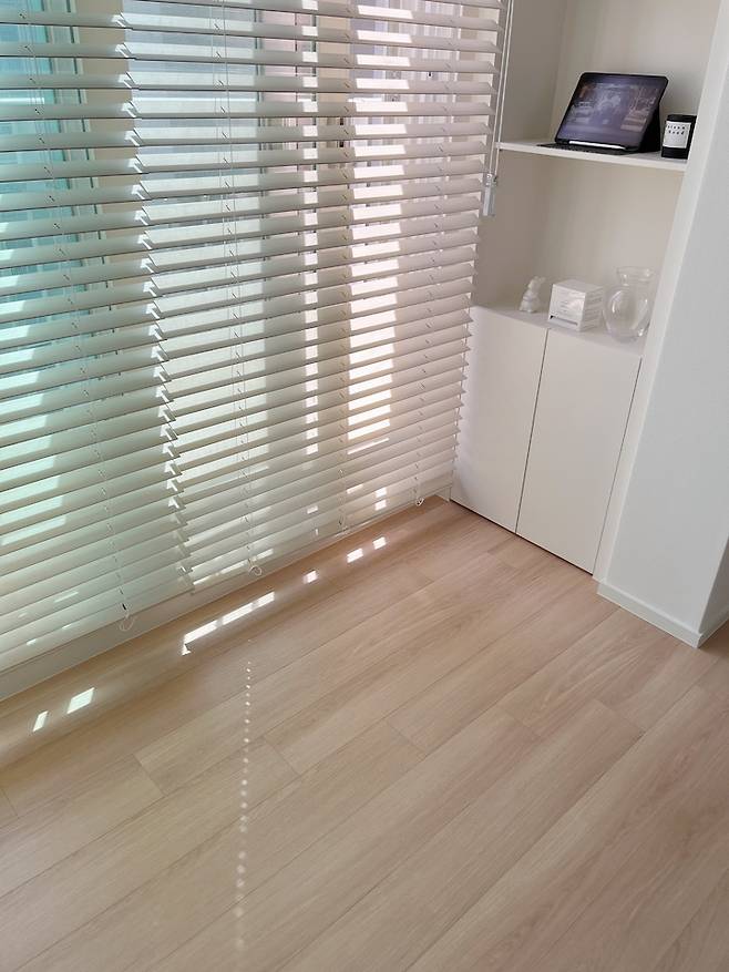 서재 방엔 커튼 대신 우드 블라인드를 달았어요. 햇살 좋은 카페에 가면 블라인드 사이로 부서져서 들어오는 게 너무 예쁘더라구요! 그래서 꼭 서재 방은 우드 블라인드를 달아야겠다고 결심했었어요 ㅎㅎㅎ