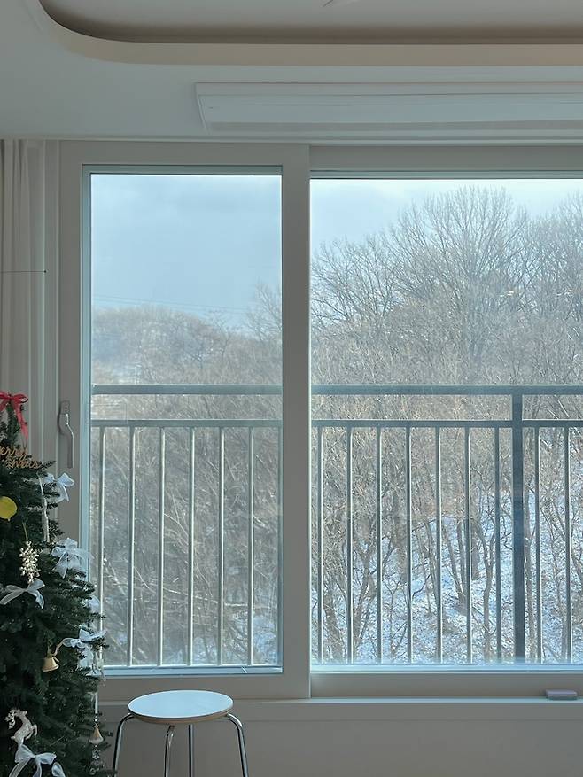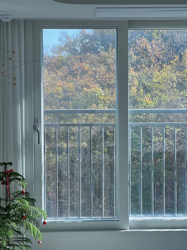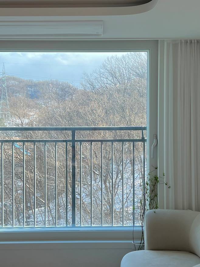 저희 집 거실 뷰는 나무가 있는 숲 뷰라서 봄, 여름, 가을, 겨울 사계절을 모두다 느낄 수 있어서 정말 좋아요. 여름엔 이렇게 초록 뷰를 볼 수 있구요.