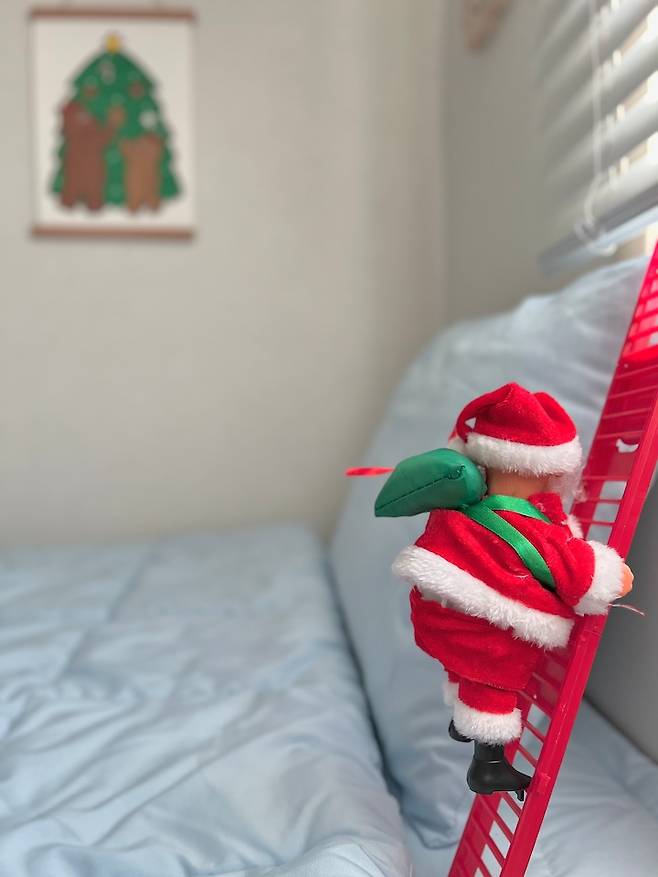 이번에 새로 구매한 사다리타는 산타 할아버지에요. 아이들이 정말 좋아하더라구요. 벌써 트리를 넣어야 할 시기가 왔는데 아직까지 정리를 못하고 있어요.