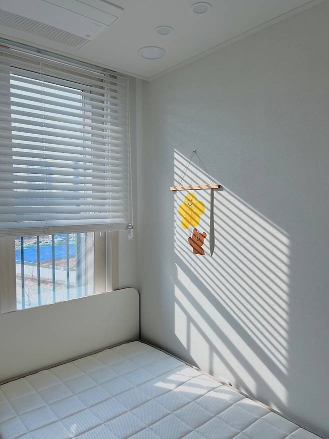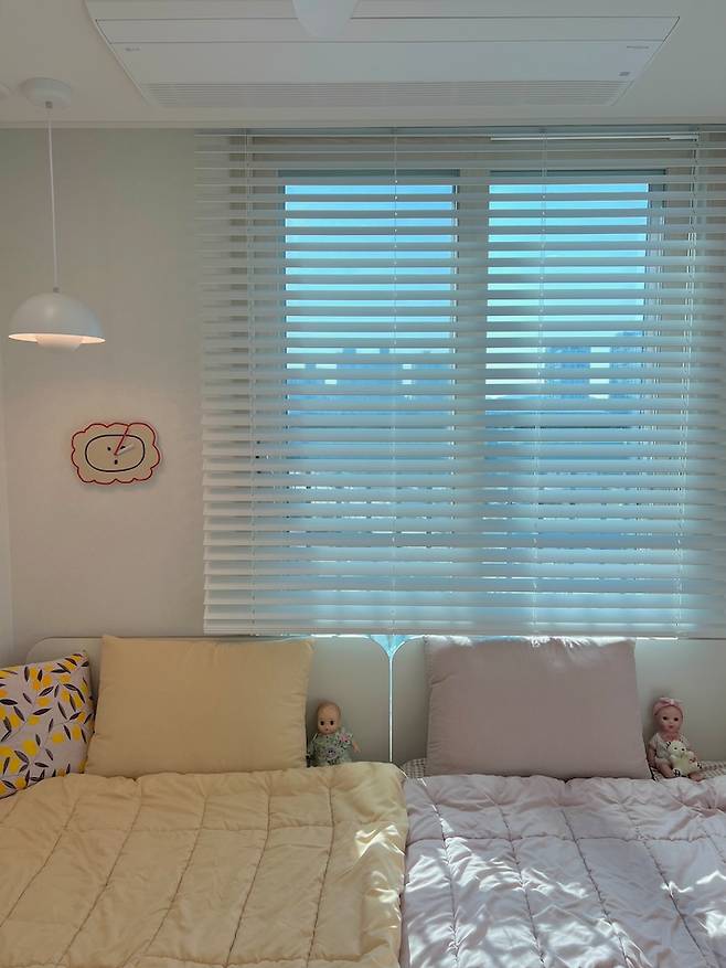 아이들 방에는 우드 블라인드를 설치했어요. 생각보다 빛 차단도 잘 되서 아이들이 잠도 푹 잘 자더라구요.