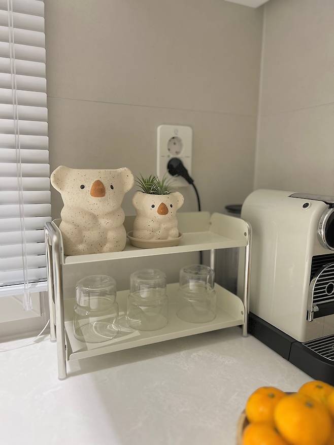 물컵 선반에는 이오난사 화분을 두었어요. 매일 봐도 코알라 화분은 정말 귀여운 거 같아요.