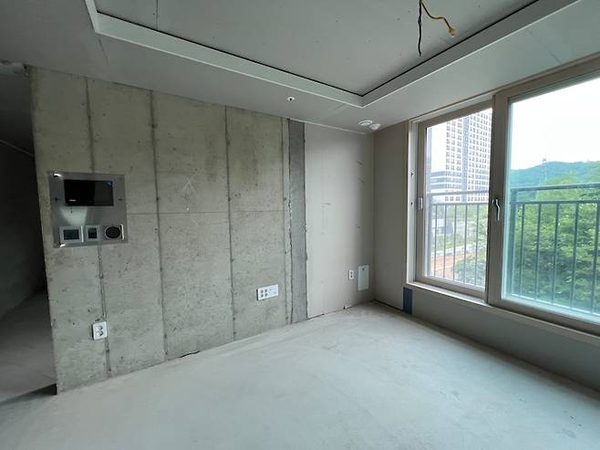 정말 아무것도 없던 시멘트 상태의 거실이었어요. 기존에 노출되어 있던 콘센트는 모두 제거 했어요.