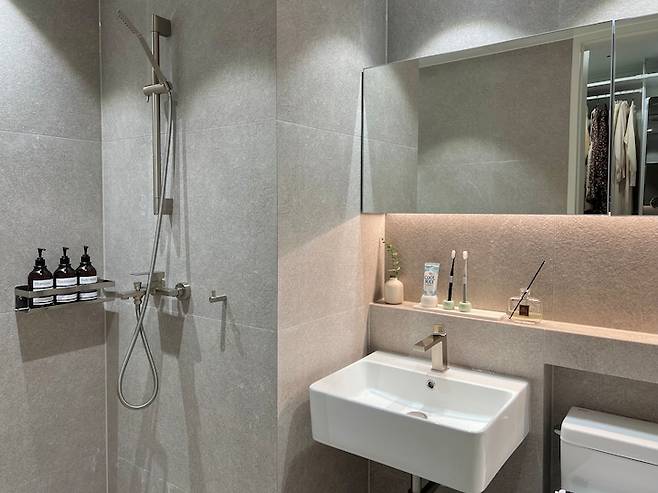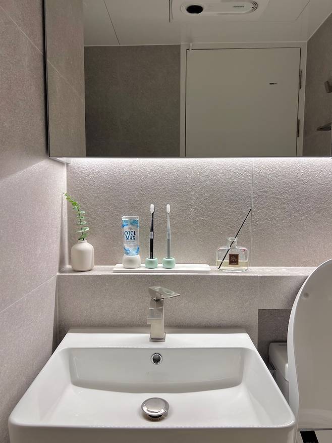 색상은 그레이 색상인데 너무 어두우면 화장실이 좁아보일까봐 그레이 색상으로 골랐는데 정말 잘 선택한 거 같아요.