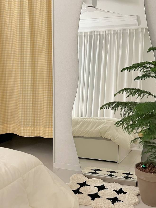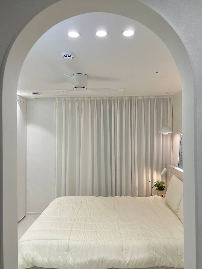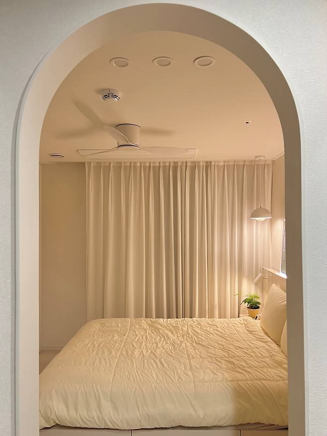 아치형 가벽을 세우고 드레스룸에 도어를 설치할지 고민을 했었는데 가끔 맘에 드는 커튼도 바꿔가면서 변화를 줄 수 있어서 아치형 가벽만 세우길 잘한 거 같아요.