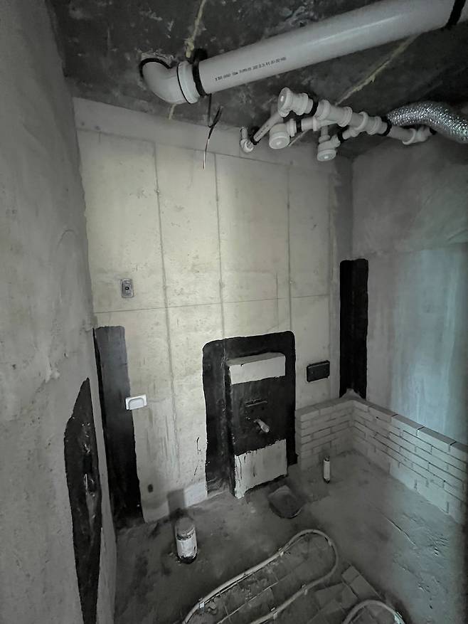 처음 아파트 입주점검을 하러 왔을 때 화장실을 보고 깜짝 놀랐던 기억이 나요. 심지어 방수도 되어있지 않고, 깜깜하고 무서운 느낌까지 들었는데 이 공간이 정말 화장실로 바뀔 수 있을까 했거든요.