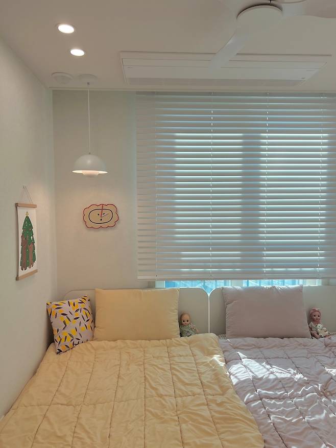 완성된 저희 아이들의 침실 공간이에요. 이사 가면 꼭 엄마 아빠랑 떨어져서 잘 거라고 약속을 했는데 아직까지 자다가 새벽에 안방 침실로 건너오는 저희 아이들이에요. 때가 되면 엄마 아빠를 찾지 않고 푹 잘 자는 날이 오겠죠?