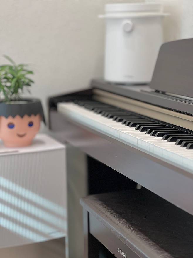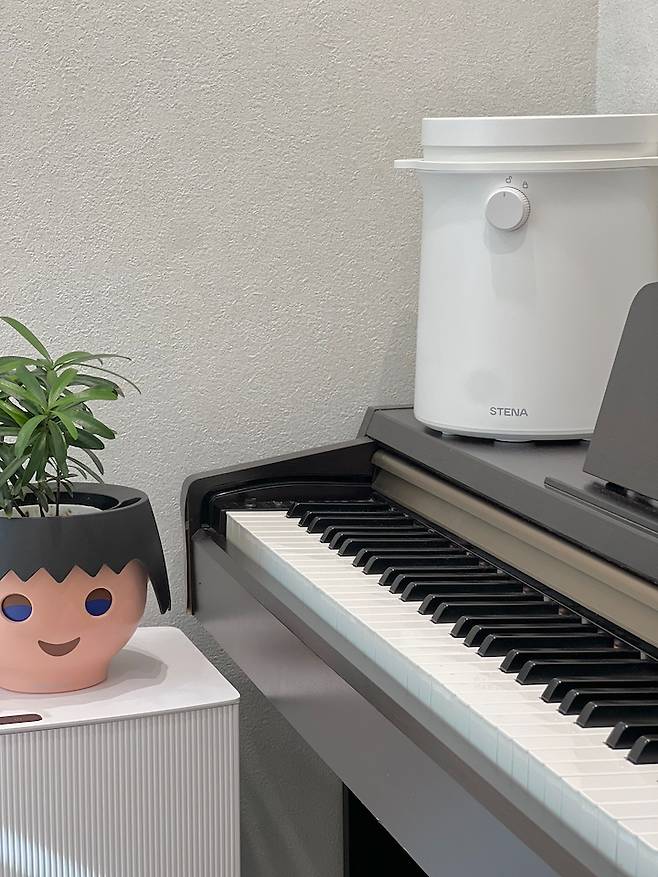 피아노 위에는 스테나 가습기를 두었어요. 가열식 가습기라서 따뜻하게 방안 습도를 높여주고 겨울철에 정말 잘 사용하고 있는 제품이에요.