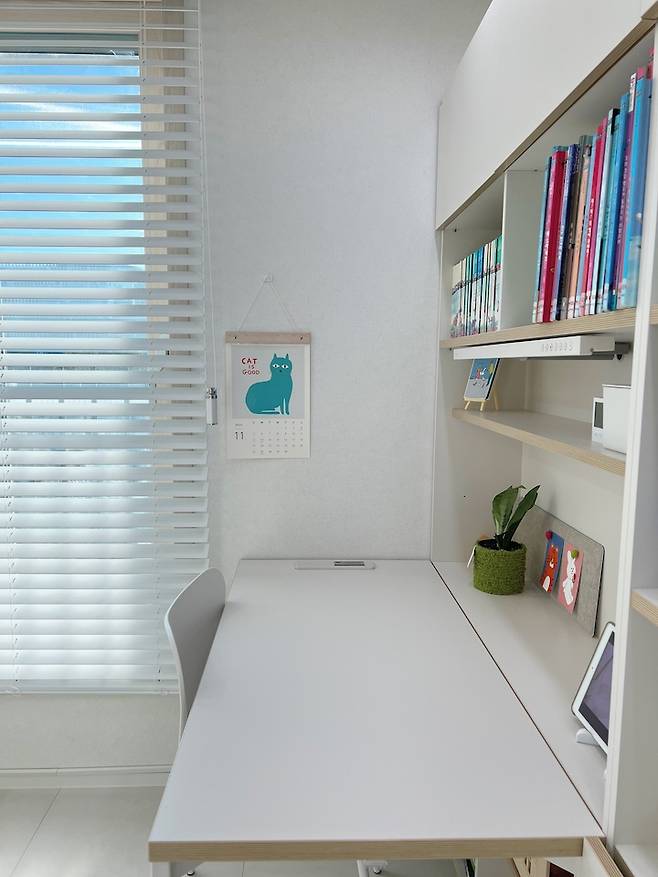 책상 옆쪽에는 아이들 옷을 수납하는 붙박이장을 설치했어요.