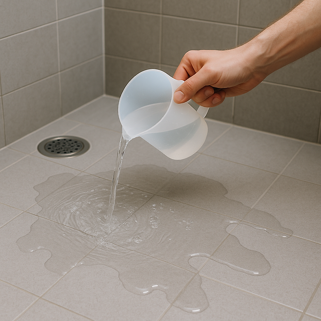 희석액을 화장실 바닥 전체에 골고루 뿌려둡니다.