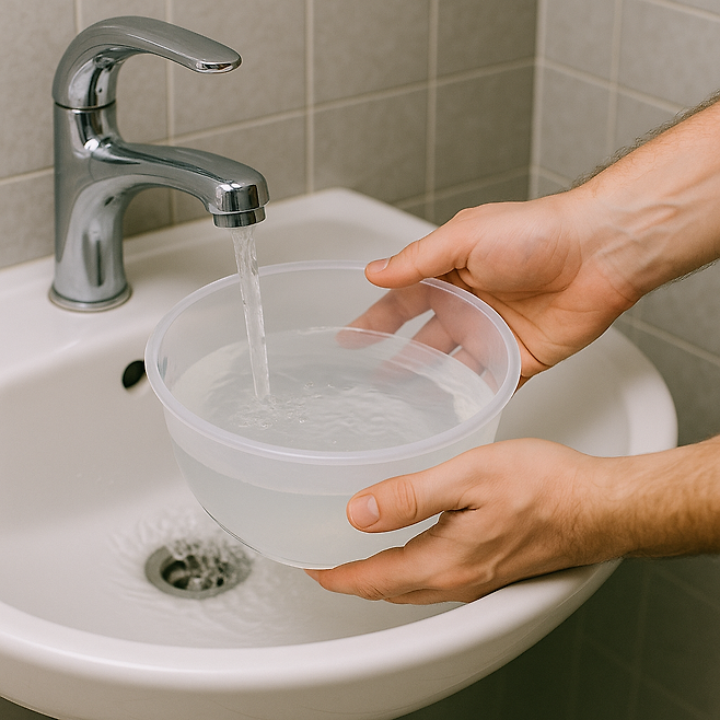 바가지에 찬물(필수) 2리터를 받습니다.