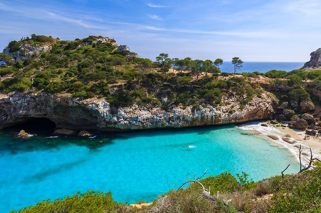 지중해 서부 발레아레스 제도(Balearic Islands)에는 마요르카를 포함해 매력적인 섬이 즐비하다. 3,000년 이상 된 유산을 간직한 미노르카(Minorca), 수많은 해양 동물의 터전 카브레라 군도(Cabrera Archipelago), 전 세계 클러버들이 모이는 EDM의 성지 이비자(Ibiza)까지. 마요르카는 이 쟁쟁한 라인업에서 독보적으로 사랑받는 대표 여행지이자, 제도의 가장 큰 섬이다. 마요르카에는 260개가 넘는 해변이 있는데, 동굴 탐험이 가능한 곳, 일몰 명소가 끝내주는 곳, 그 매력도 다양하다. 특히 칼라 롬바르(Cala Llombards), 칼로 데스 마르몰스(Calo des Marmols), 칼라 데이아(Cala Deia)는 절벽 아래 숨겨진 해변으로, 휴식을 위한 완벽한 조건을 갖췄다.