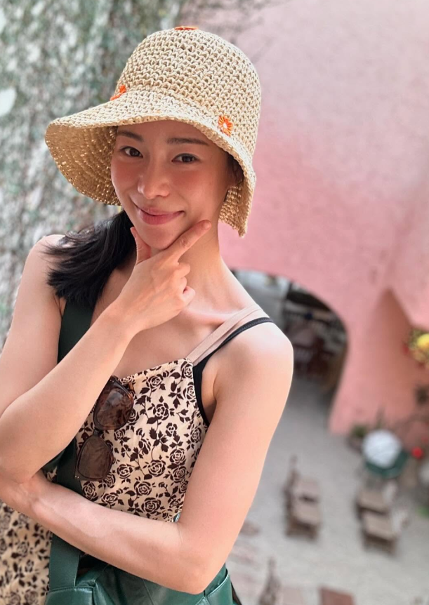 여름 스타일링에 빠질 수 없는 라탄 아이템도 눈길을 끌었습니다. 임지연은 넓은 챙의 라탄 모자를 매치해 스타일에 여름 휴양지 감성을 녹여냈죠.