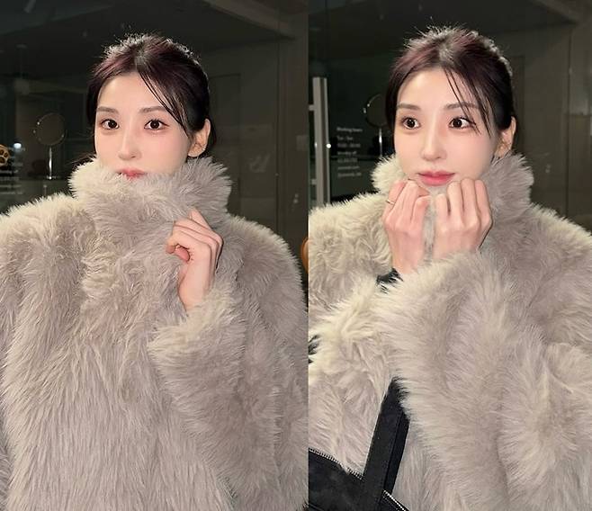공개한 사진에서 강다은은 아름다운 비주얼에 모피 코트를 걸친 외출룩으로 청순하면서도 럭셔리한 미모를 드러냈다.
