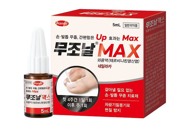 한미약품의 ‘무조날맥스외용액’은 이와는 다른 ‘테르비나핀염산염’을 주성분으로 한 퍼스트 제네릭 외용 손·발톱진균증 치료제로, 기존 성분의 불편함을 해소할 수 있는 새로운 대안을 제시하고 있다.