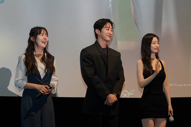 이어서 진행된 레드카펫 행사는 본격적으로 현지 팬들과 만나는 자리로 영화의 화려한 서막을 알렸다. 진영과 다현은 스크린 속 첫사랑 로맨스를 현실에서도 그대로 재현하듯 설렘 가득한 분위기를 자아내며 등장, 팬들의 열렬한 환호 속에서 사랑스러운 케미가 돋보이는 포토타임을 진행하며 현장 분위기를 더욱 뜨겁게 달궜다.