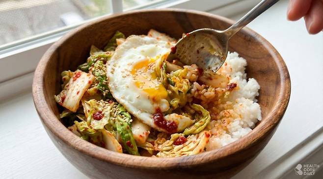 달걀프라이를 올리는 방식도 자주 쓰인다. 봄동은 잎채소라 단백질이 많지 않은데, 달걀을 더하면 부족한 부분을 채울 수 있다. 노른자에 들어 있는 지방 역시 베타카로틴 흡수에 도움을 준다. 밥 위에 봄동을 넉넉히 올리고, 달걀과 기름을 곁들이면 한 그릇 식사로 손색이 없다.