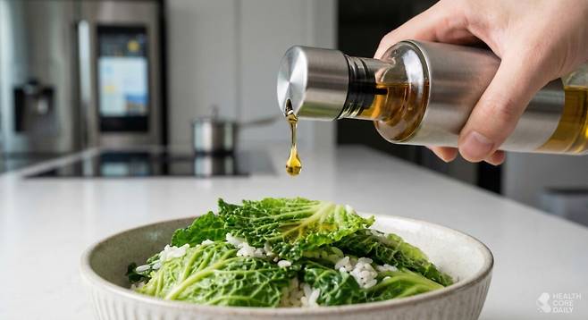 베타카로틴은 물보다 기름에 잘 녹는다. 봄동을 그대로 먹는 것보다 식물성 기름과 함께 비벼 먹으면, 흡수되는 양이 늘어난다. 참기름이나 들기름을 더하면 향이 깊어지고, 영양 흡수도 한층 수월해진다.