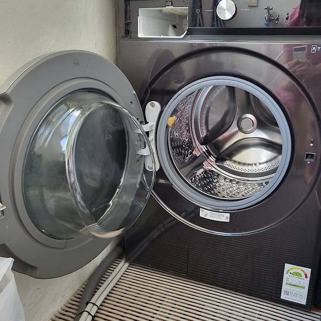 신혼 가전으로 맞춘 삼성 그랑데 드럼 세탁기 24kg입니다. 저는 주로 다 쓴 치약을 이용해서 빠르게 휘리릭 세탁조 청소를 할 때가 많아요.