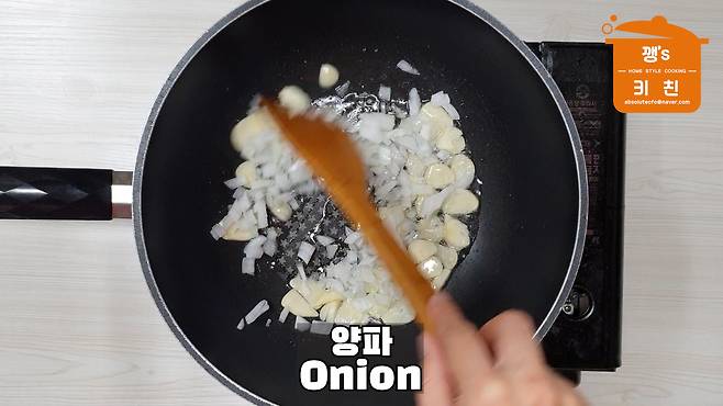 잘게 썬 양파를 넣고 볶아줍니다
