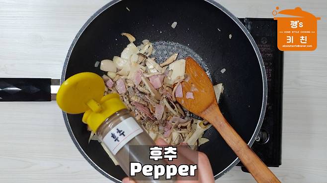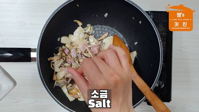 불린 쌀, 버섯, 양파 1/2, 베이컨,