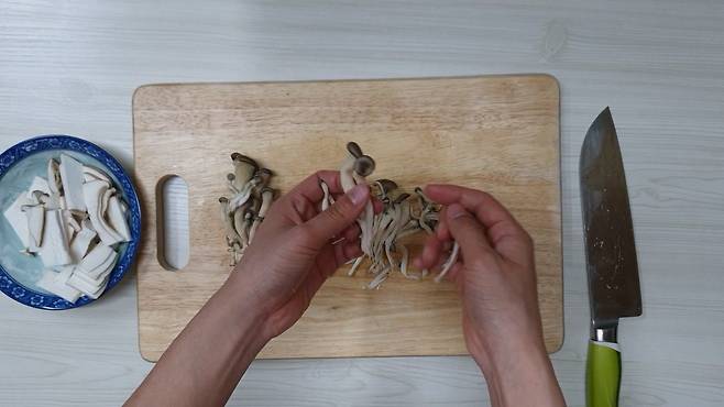 1. 버섯 썰기, 찢기