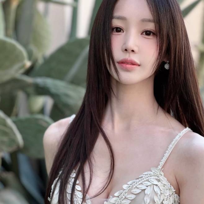 마지막으로 소개할 드레스는 화이트 컬러의 웨딩 드레스 스타일 원피스예요! 역시나 시스루 소재로 은근한 섹시함을 더했고, 풀어헤친 긴 생머리와 완벽한 조화를 이루면서 여신 비주얼을 완성했답니다! 😍 누가 봐도 반할 수밖에 없는 스타일링이었어요! ✨