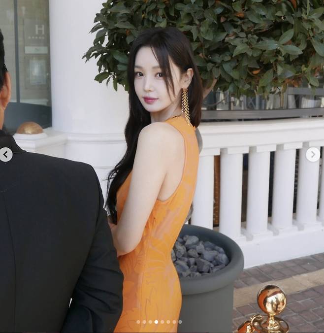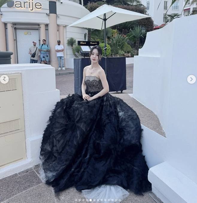 첫 번째로 소개할 드레스는 블랙 시스루 롱 드레스예요! 체스트 부분부터 바디 전체가 시스루로 디자인되어 은근한 섹시미와 우아함을 동시에 뽐냈는데요. 흑조를 연상시키는 트레인 디테일까지 더해져 고급스러움이 철철 넘쳐흘렀답니다. ✨ 과하지 않은 메이크업 덕분에 드레스에 시선이 더욱 집중되면서 해외 매체에서도 극찬을 아끼지 않았다고 해요!