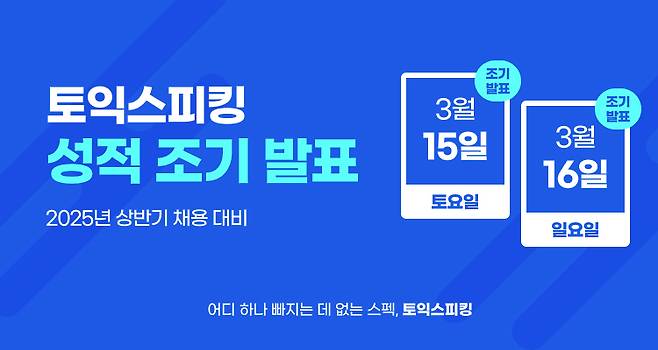 한국TOEIC위원회 관계자는 "매년 신규 채용 규모가 줄면서 취업 경쟁이 더욱 치열해지고 있다"면서 "이번 조기 발표에 따라 주말 시험에 응시해 삼성그룹 공채에 지원할 수 있길 바란다"고 말했습니다.