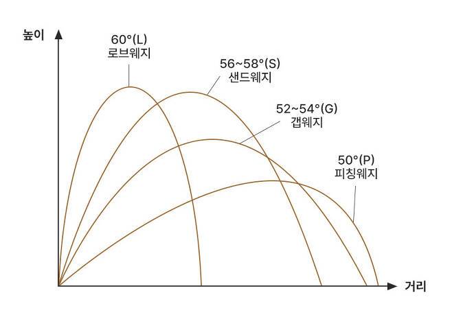 50°의 피칭웨지를 선택해공을 멀리 보내보세요.