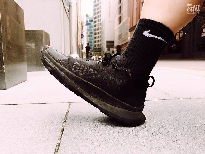 애착 러닝화_나이키, 페가수스 트레일4 고어텍스(GORE-TEX)_로드 러너지만 트레일 러닝화를 신고 뛰는 것을 좋아한다. 고어텍스 소재로 만들어진 어퍼(발등을 덮는 신발의 겉 부분) 덕분에 4계절 내내 신어도 부담이 없다. 특히 요즘처럼 소나기가 자주 올 때에도 고어텍스의 방수 기능 덕분에 고민 없이 신고 뛸 수 있어서 추천한다. 게다가 도심부터 트랙까지 지면 컨디션과 상관없이 달릴 수 있는 밑창의 강한 접지력도 매력이다. 나이키 트레일 러닝 제품을 좋아하는 편이다.