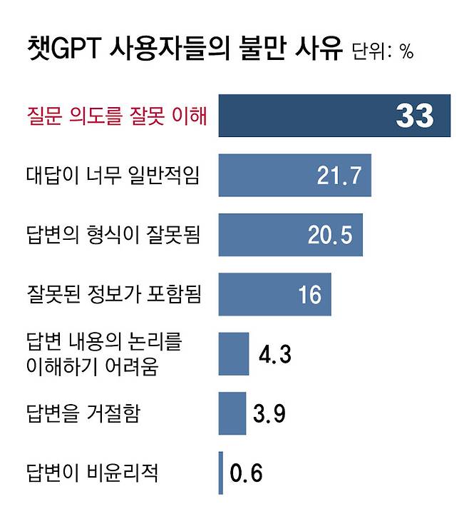 챗GPT 답변, 사용자 불만은… ① 질문 의도 오해 ② 깊이 부족 ③ 부정확[박재혁의 데이터로 보는 세상]