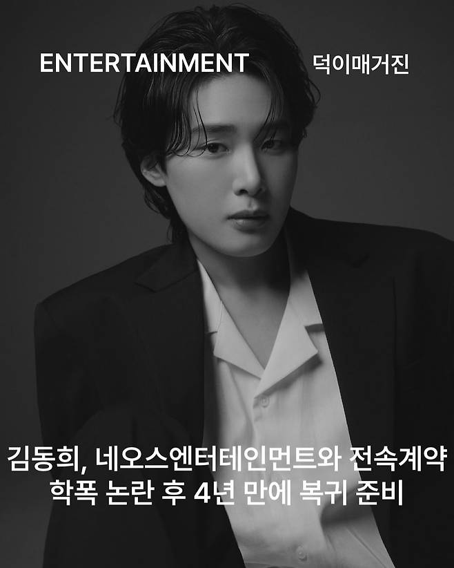 네오스엔터테인먼트는 19일 김동희와 전속계약을 맺고, 향후 매니지먼트 및 연기 활동을 전담한다고 밝혔습니다. 김동희는 감우성, 이태구 등 소속 배우들과 함께하며 복귀를 준비할 예정입니다.