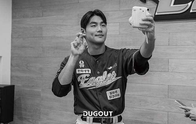 그만큼 수려한 외모로 유명해요. 지난 문동주와의 인터뷰(2023년 9월 호)에서 이글스 내 잘생긴 선수에 관해 묻자, 망설임도 없이 본인을 꼽더라고요. 스스로 보기엔 어때요?