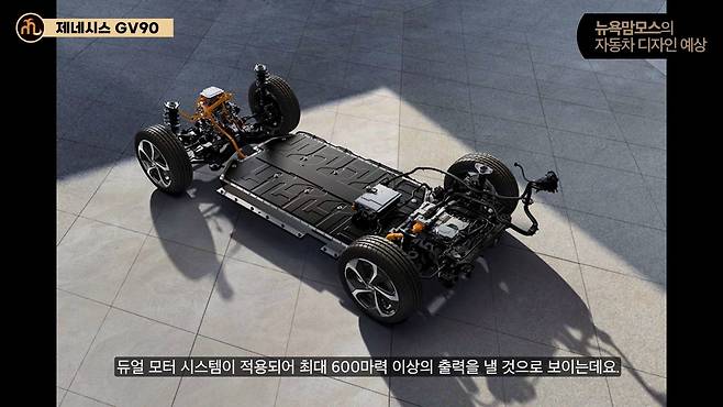GV90에는 110kW 급 대용량 배터리가 장착되어 1회 충전 시 600km 이상의 주행거리를 제공할 것으로 예상된다.