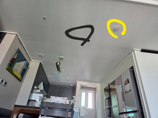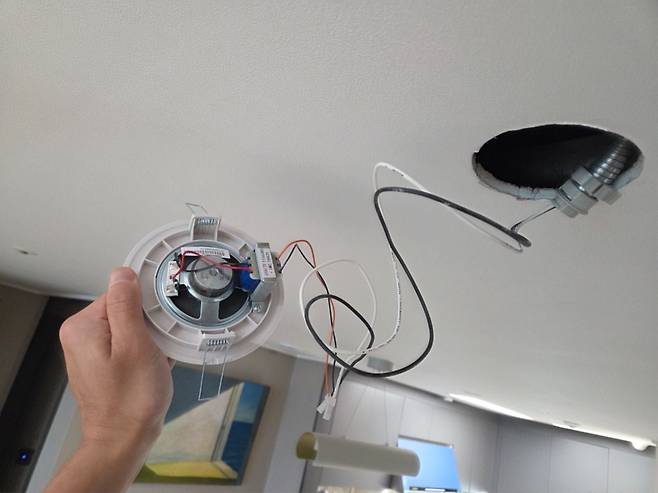 노랑 동그라미 천장 스피커에서 전원을 끌어오려합니다.