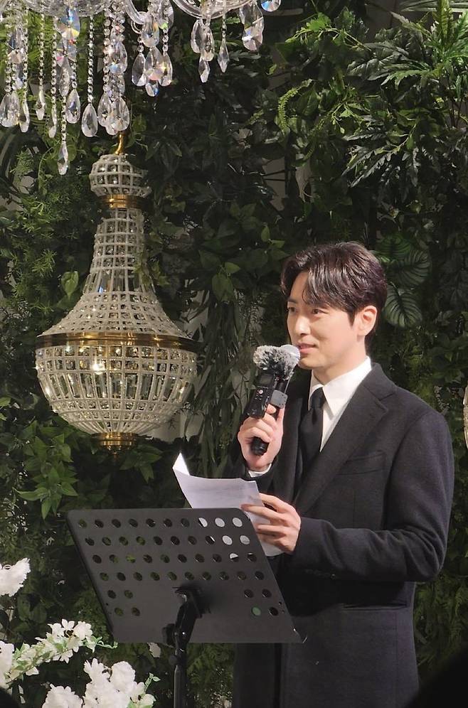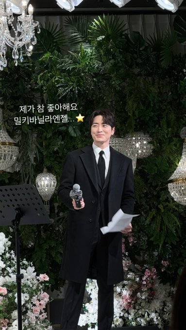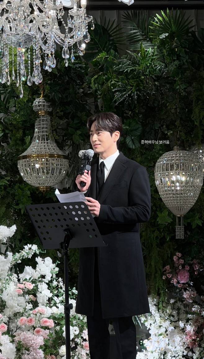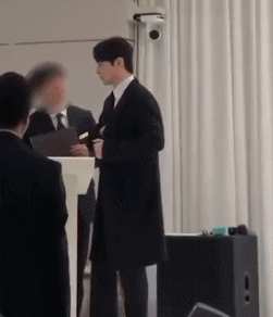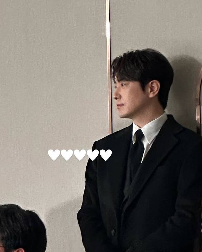 이날 이준혁은 베이직한 블랙 수트 셋업, 화이트 셔츠, 블랙 타이, 블랙 투버튼 코트를 믹스한 세련된 포멀 룩으로 등장했는데요!