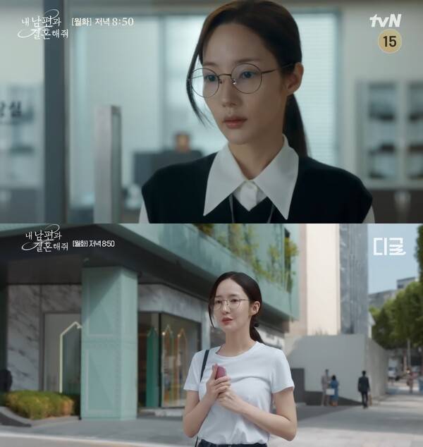 드라마 초반에는 박민영의 수수한 스타일링이 많이 보인다. 포인트는 안경.