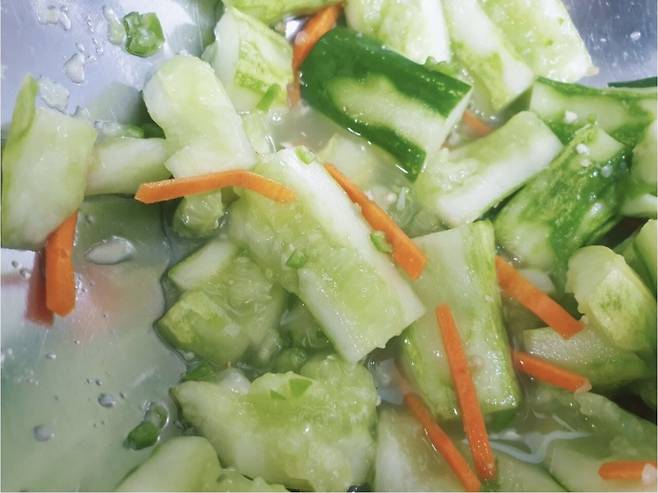 이거 그냥 따라 버리지 말고 오이냉국처럼 드시면 맛있어요
