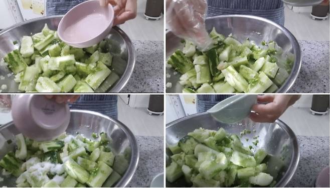 버무리다 보면 오이의 수분 때문에 물기가 생기는데요