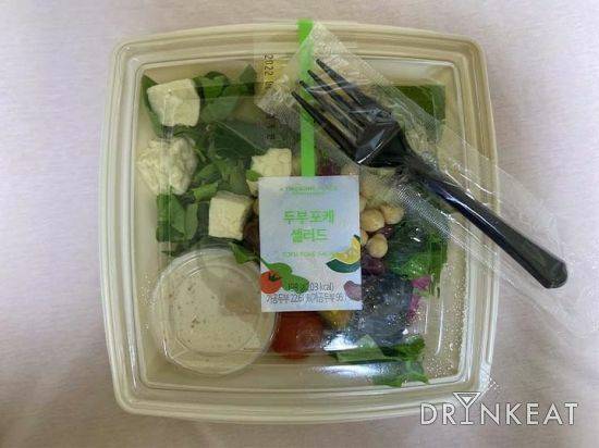 건강하고 산뜻하게 시작하고 싶다면 샐러드는 어떤가. 식물성 단백질 대표 식품인 두부를 포함하여 단호박, 고구마, 강낭콩, 케일, 병아리콩이 다채롭게 들어있다. 한입 크기로 먹기 좋은 포케 샐러드이기에 먹기에도 편하다. 가공된 두부는 굉장히 부드럽고, 콩 향이 많이 풍기지 않아 평소 두부에 거부감이 있던 사람들도 즐길 수 있을 정도다. 고소한 아몬드 두유 드레싱이 함께 제공되는데, 두부와 어울려 고소함이 배가 된다.